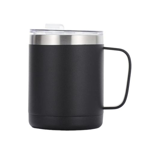 Чашка из нержавеющей стали с логотипом и ручкой, стакан с двойными стенками, дорожная кружка для кофе на 12 унций с крышкой и ручкой